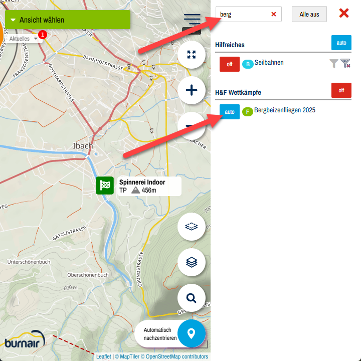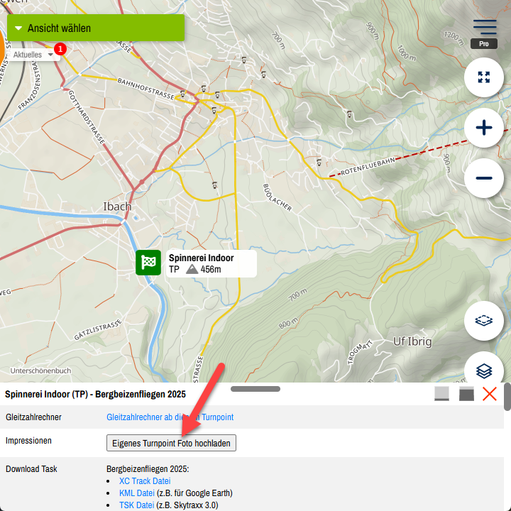 Selfie bei einem H&F Rennen am Turnpoint hochladen 1. September 2025 12:43 Aktualisiert AnforderungRegistrierung auf der burnair Map (www.burnair.cloud)AntwortWähle die Ebenen ausWähle das Rennen ausKlicke auf einen TurnpointWähle den ButtonLade dein Bild hoch Verwandte Beiträge Score Race mit der burnair Map bei H&F Rennen Wie mache ich einen Withdrawal oder Report Back für ein H&F Race? Was ist der Unterschied zwischen DHV und burnair Startplätzen? Wir möchten am Startplatz / Landeplatz eine Wetterstation aufstellen, welche? Datenverbrauch der burnair Go App Kommentare 0 Kommentare Bitte melden Sie sich an, um einen Kommentar zu hinterlassen.