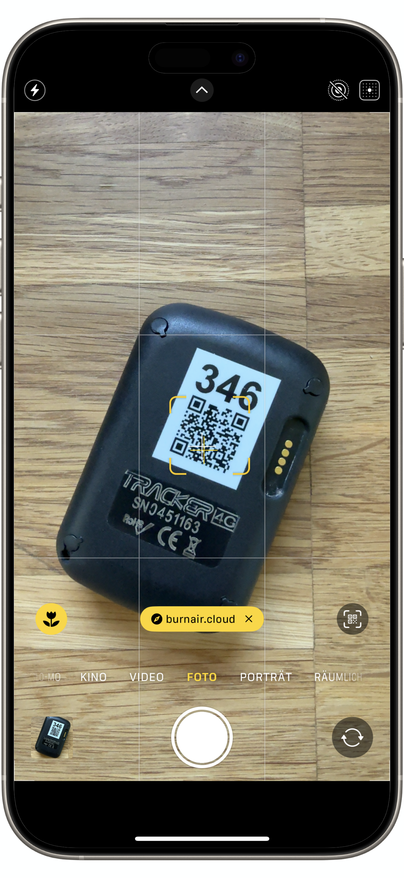 - Scanne mit der Handykamera die Rückseite deines Trackers