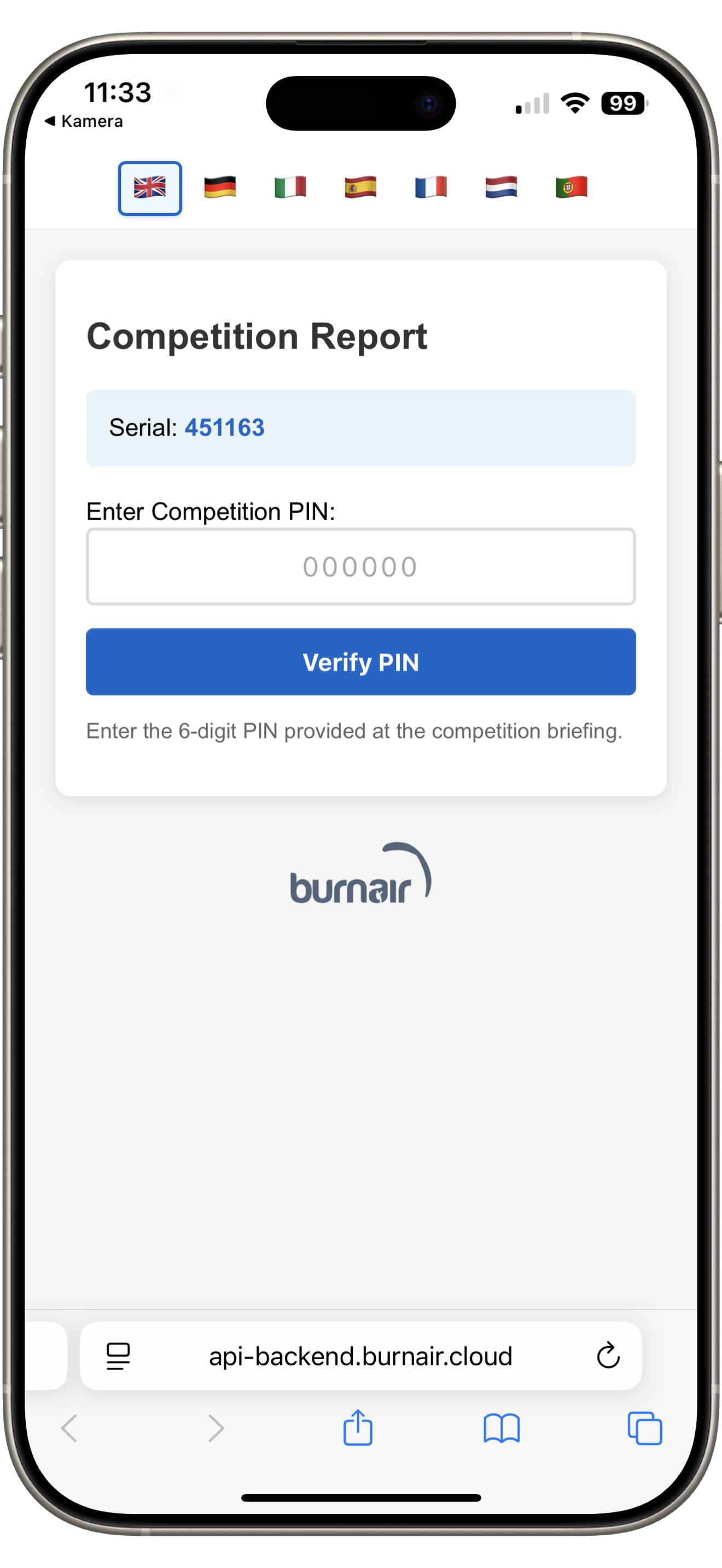 - Gebe die 4 stellige Competition ID ein